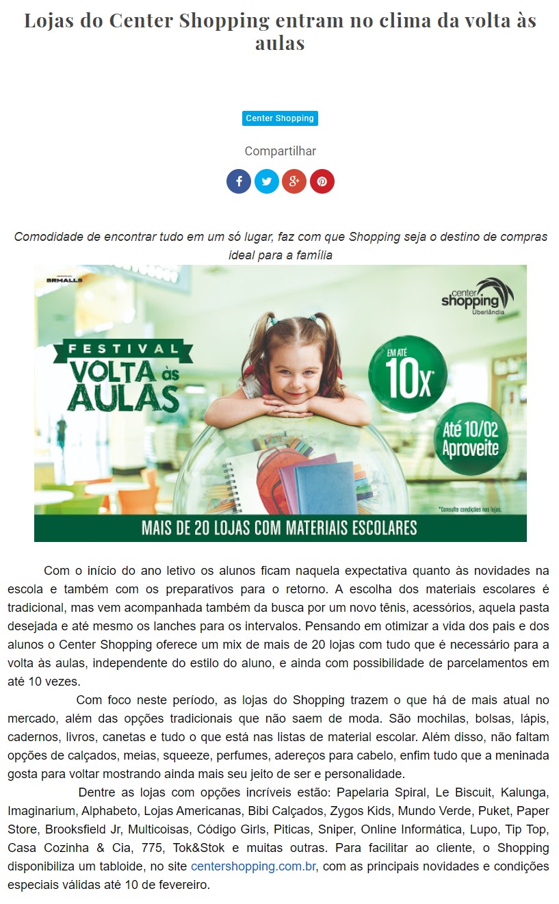 ONLINE - Lojas do Center Shopping entram no clima da volta às aulas - 22/01
