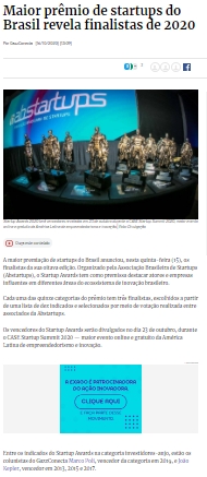 ONLINE - Maior prêmio de startups do Brasil revela finalistas de 2020 - 16/10