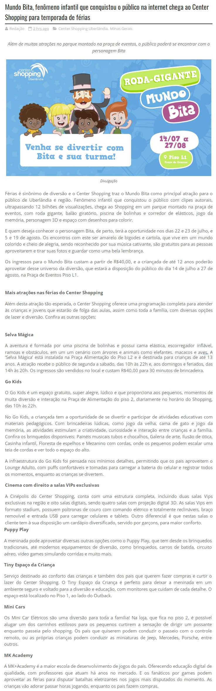 ONLINE-Mundo Bita, fenômeno infantil que conquistou o público na internet chega ao Center Shopping para temporada de férias-11.07