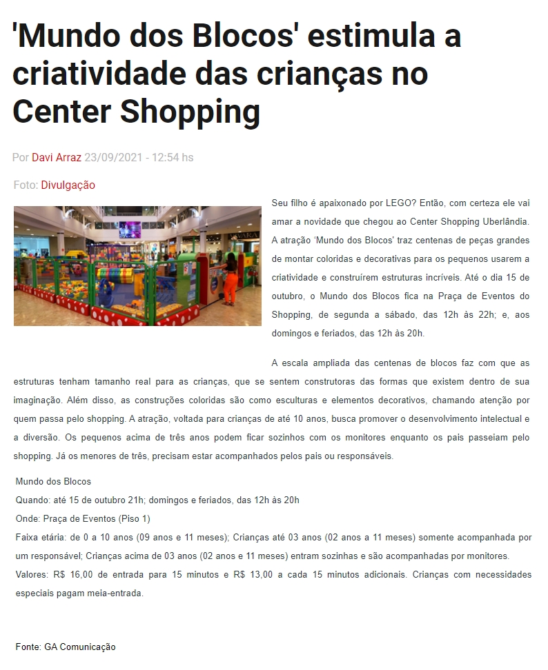 ONLINE-'Mundo dos Blocos' estimula a criatividade das crianças no Center Shopping-23.09