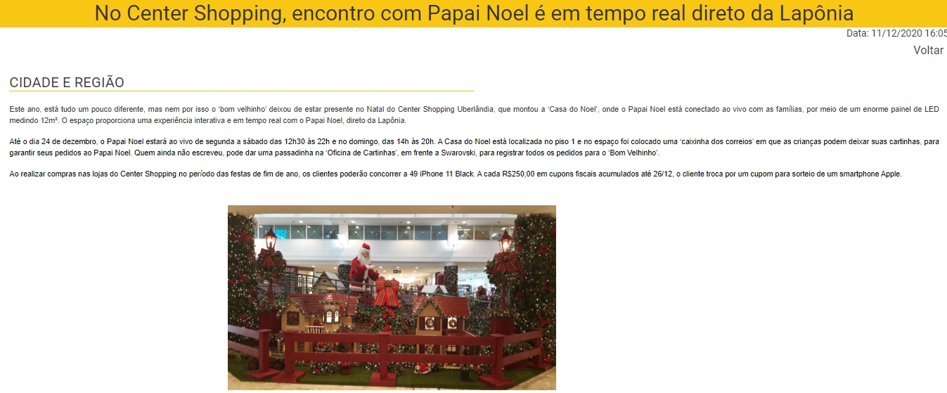 ONLINE - No Center Shopping, encontro com Papai Noel é em tempo real direto da Lapônia - 11/12