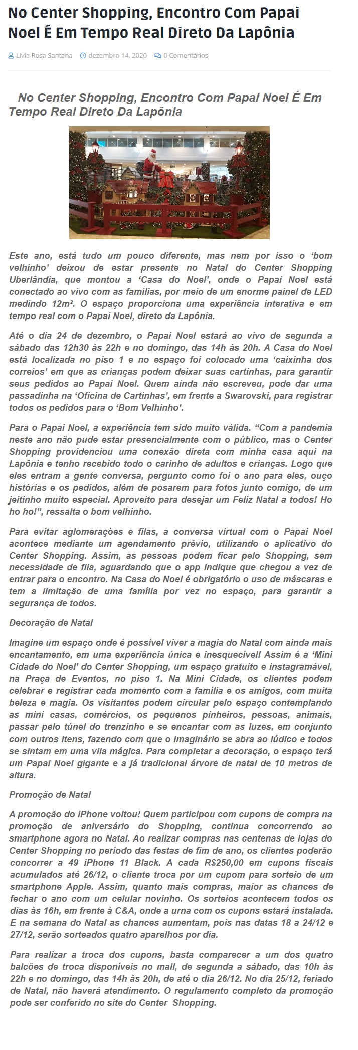 ONLINE - No Center Shopping, encontro com Papai Noel é em tempo real direto da Lapônia - 14/12