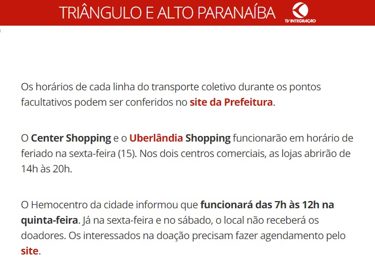 ONLINE - NOTA - O que abre e fecha nas principais cidades do Triāngulo -14.04