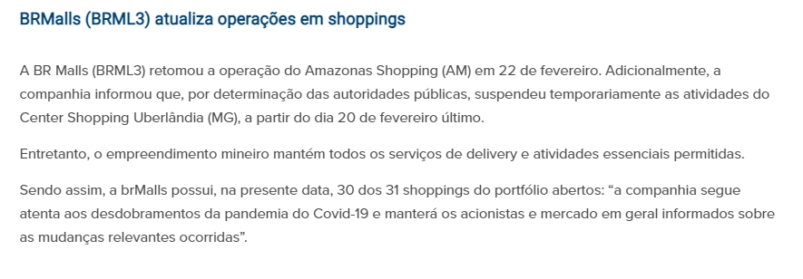 ONLINE - Nota sobre suspensões temporárias das atividades no Center Shopping, devido ao decreto - 23.02