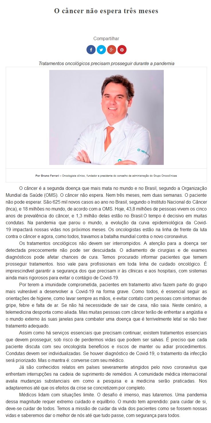 ONLINE - O câncer não espera três meses - 17/04