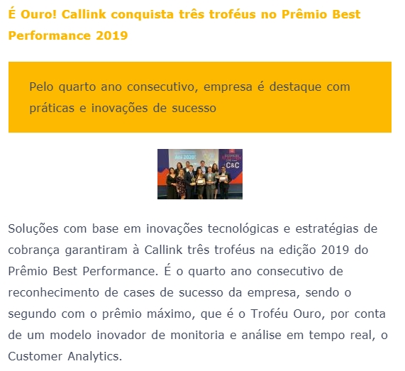ONLINE - É Ouro! Callink conquista três troféus no Prêmio Best Performance 2019 - (30/10)