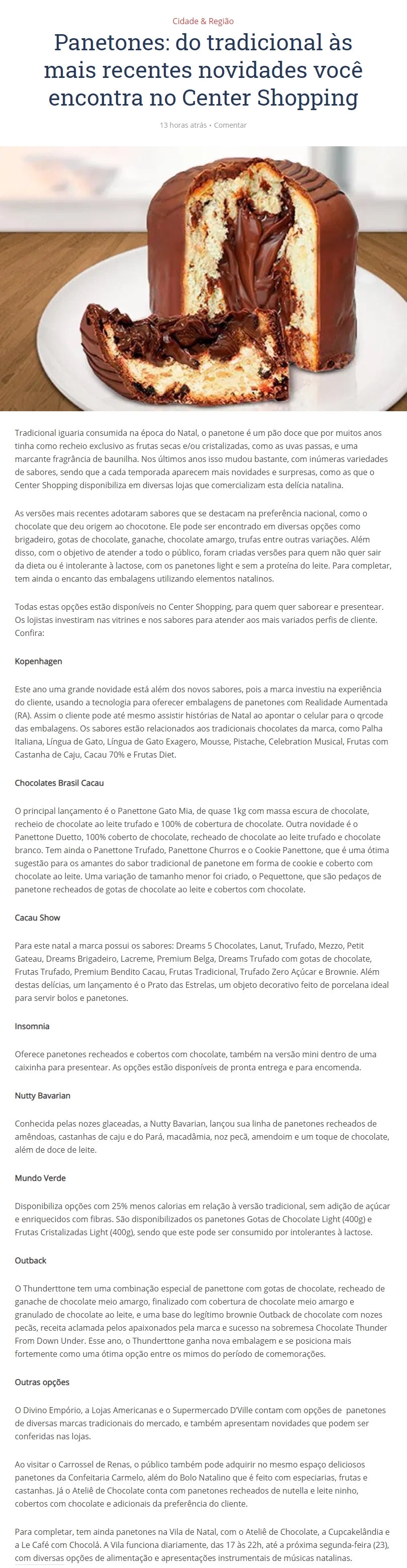 ONLINE - Panetones: do tradicional às mais recentes novidades você encontra no Center Shopping - (19/12)