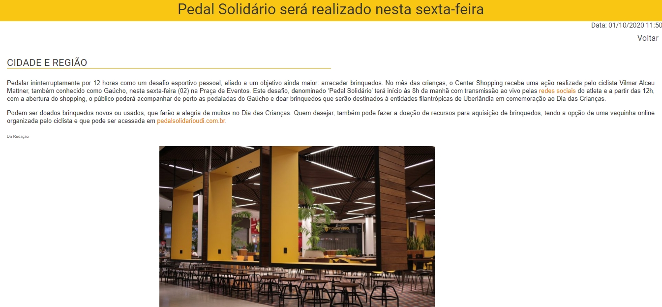 ONLINE - Pedal Solidário será realizado nesta sexta-feira - 02/10