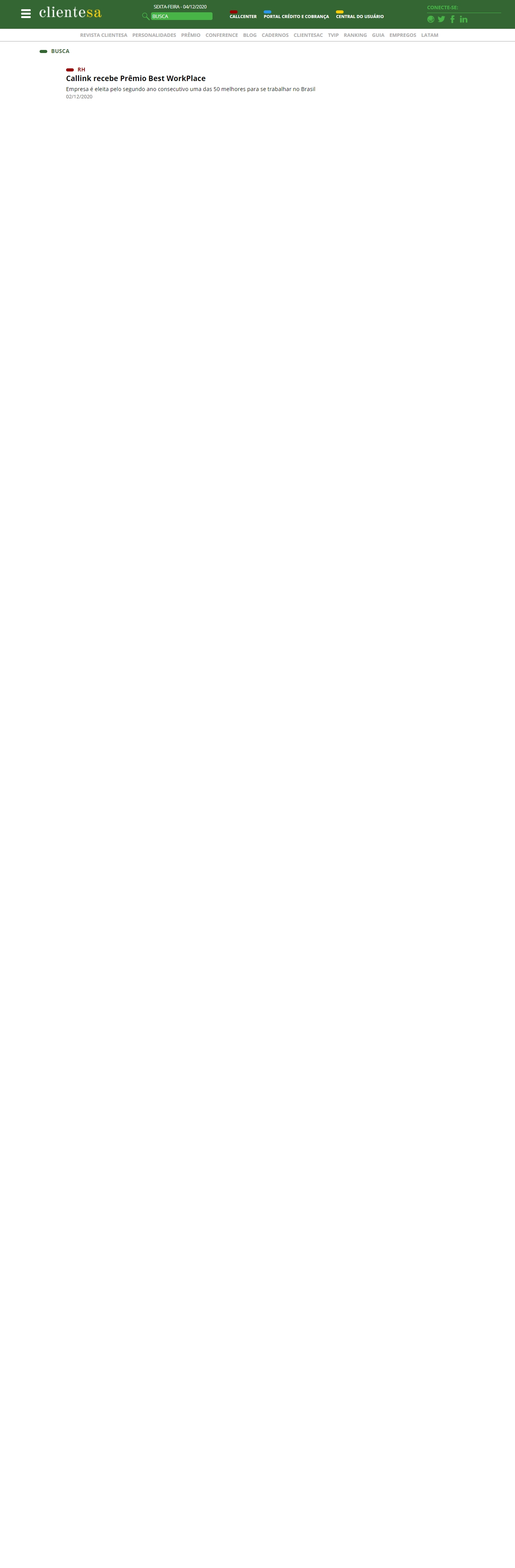 ONLINE - Pelo segundo ano consecutivo, Callink recebe Prêmio Best WorkPlace - 02/12