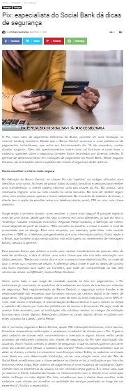 ONLINE - Pix: especialista do Social Bank dá dicas de segurança - 11/11