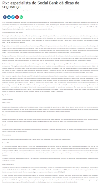 ONLINE - Pix: especialista do Social Bank dá dicas de segurança - 13/11
