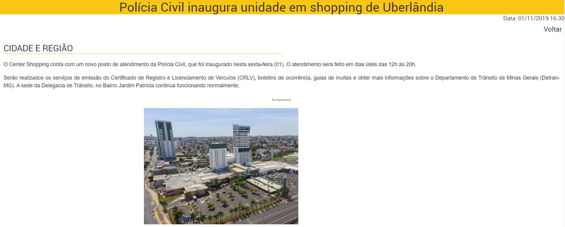 ONLINE - Polícia Civil inaugura unidade em shopping de Uberlândia (01/11)