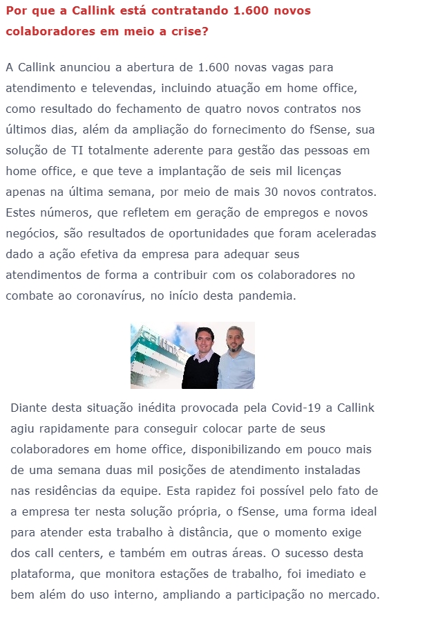 ONLINE - Por que a Callink está contratando 1.600 novos colaboradores em meio a crise? - (09/04)