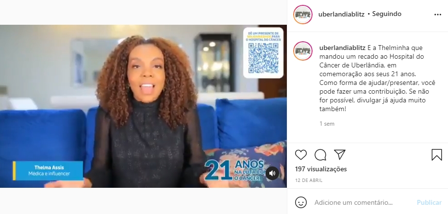 ONLINE - Post do instagram @uberlandiablitz com o vídeo da Médica e Influencer Thelma Assis - 12.04