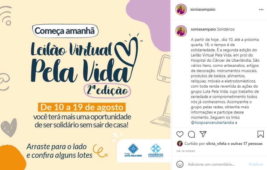 ONLINE - Post perfil @soniasampaio sobre o leilão virtual 11.08