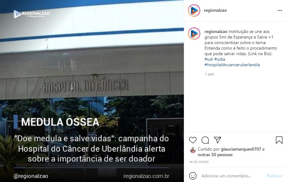 ONLINE - Post sobre a campanha de doação de medula óssea - 14.06