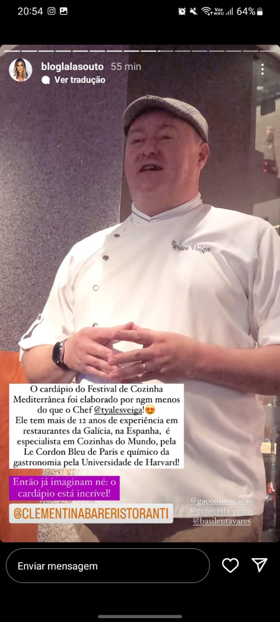 ONLINE - POST STORY'S - Sobre o 'Festival Cozinha Mediterrānea by Chef Tyales Veiga' que ocorre entre 16 e 31 de agosto-17.08