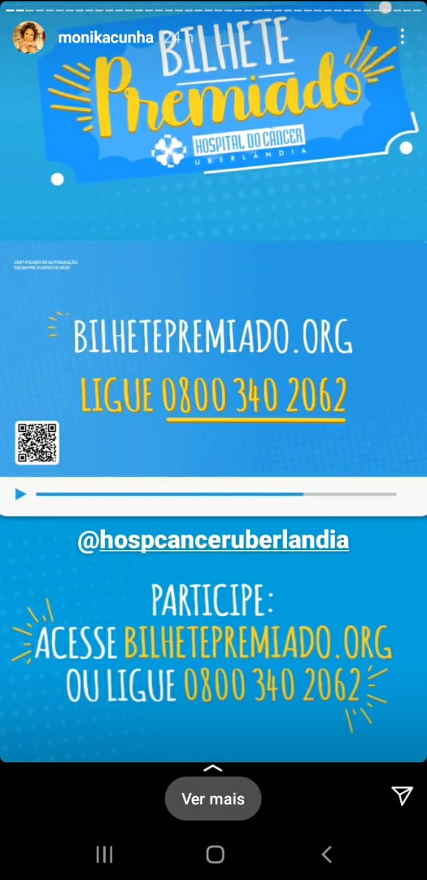 ONLINE - Posts do perfil @monikacunha sobre a campanha Bilhete Premiado - 02.12