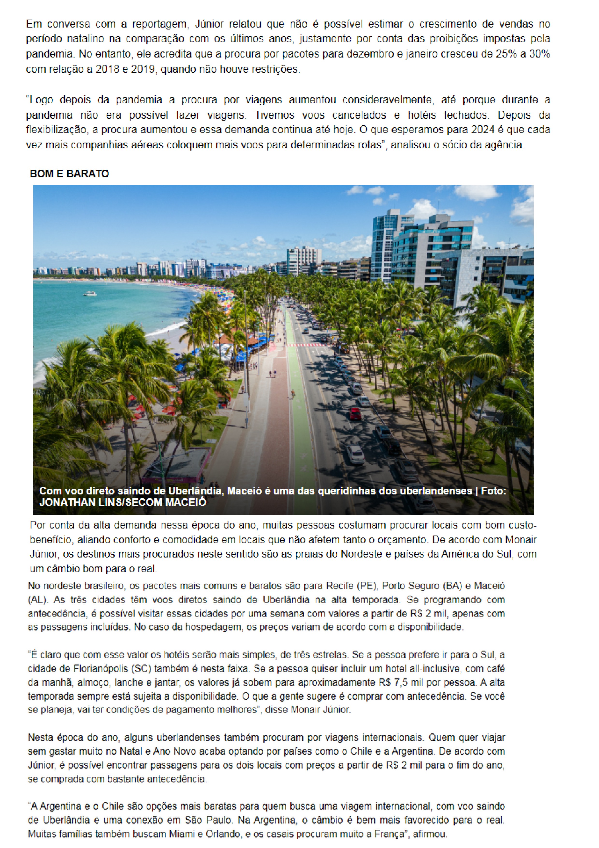 ONLINE - Procura por viagens cresce até 30%; veja destinos mais buscados pelos uberlandenses e a média de preços - 29.12