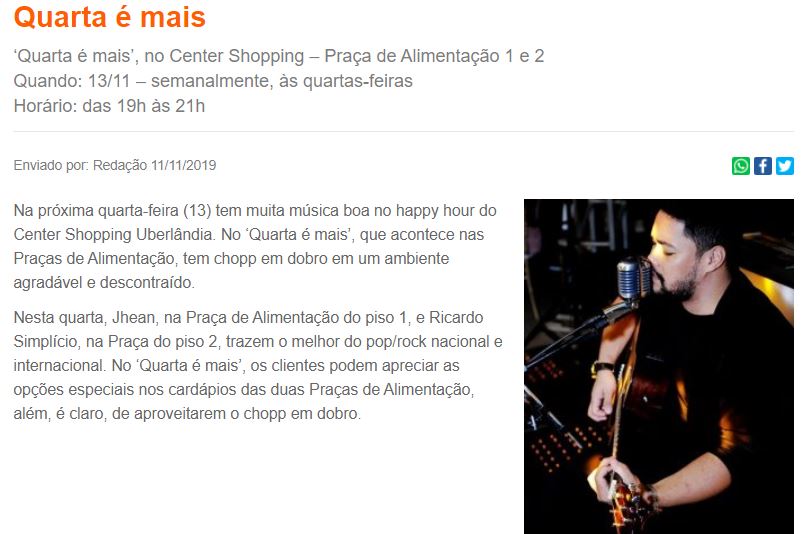 ONLINE - Quarta é mais - AGENDA (11/11)