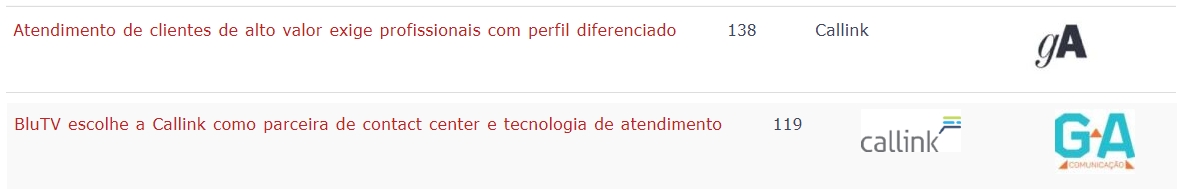 ONLINE - Ranking das 100 matérias mais lidas do Call to Call - Menção Callink - 13.09