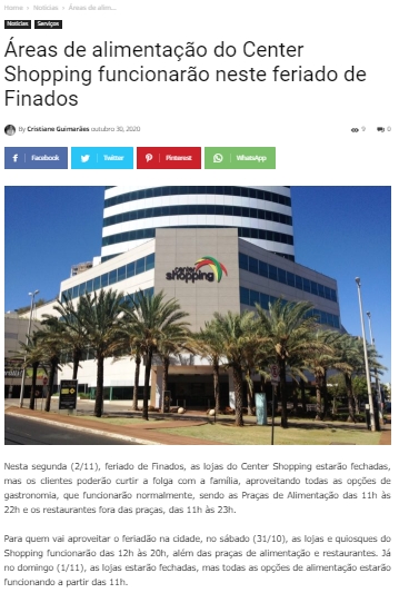 ONLINE - Áreas de alimentação do Center Shopping funcionarão neste feriado de Finados - 30/10