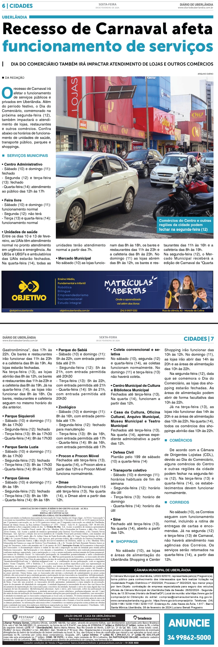 ONLINE- Recesso de Carnaval afeta funcionamento de serviços - 09.02 MENÇÃO Center Shopping