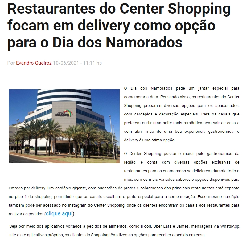 ONLINE - Restaurantes do Center Shopping focam em delivery como opção para o Dia dos Namorados - 10.06