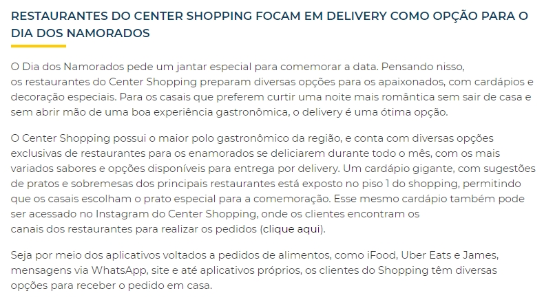 ONLINE - Restaurantes do Center Shopping focam em delivery como opção para o Dia dos Namorados - 11.06