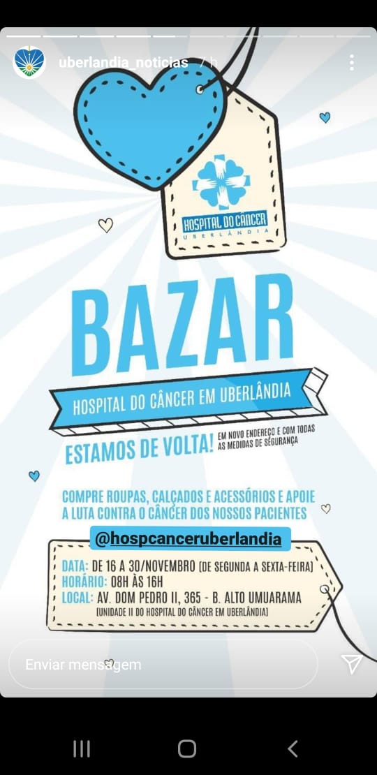 ONLINE - Stories - Bazar em prol do Hospital do Câncer - 15/11