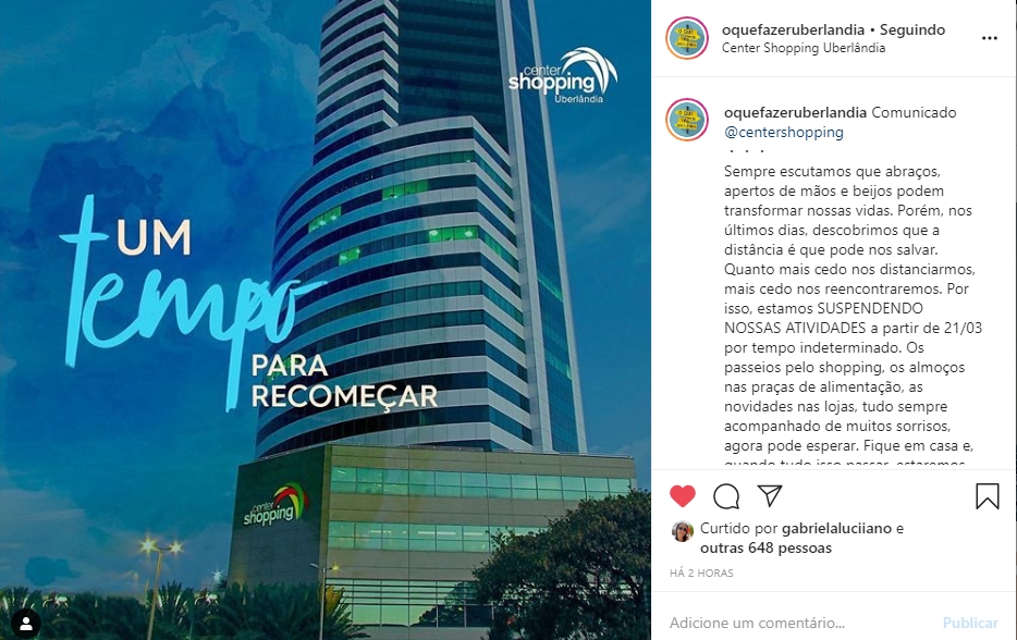 20/03/2020 - O que fazer Uberlândia