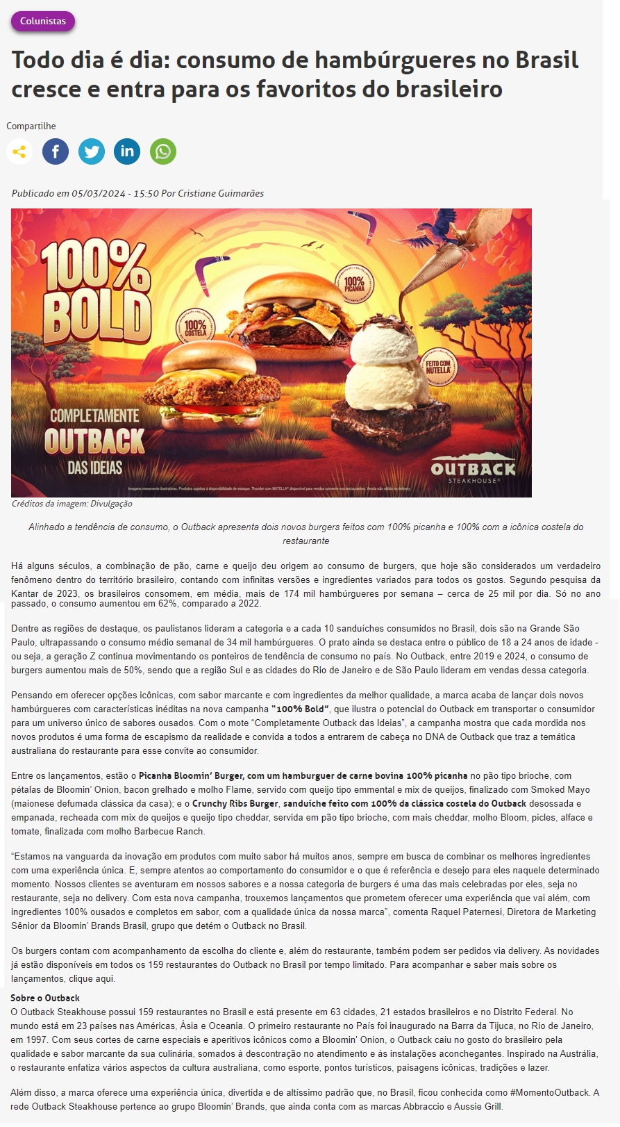 ONLINE - Todo dia é dia: consumo de hambúrgueres no Brasil cresce e entra para os favoritos do brasileiro-05.03
