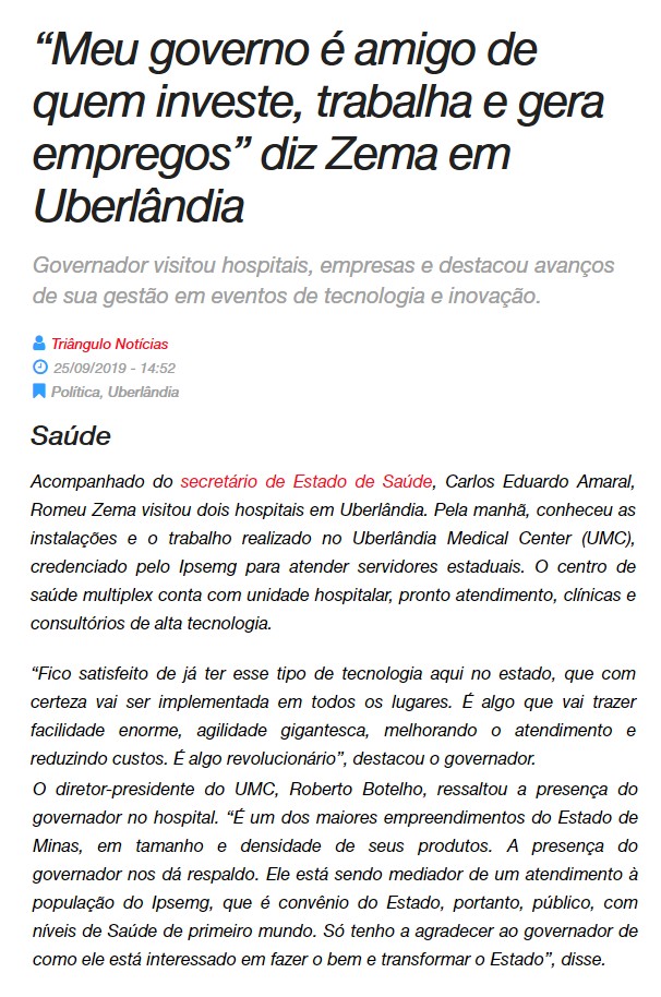 ONLINE - Uberlândia Medical Center recebe governador Romeu Zema - UMC - (25/09)
