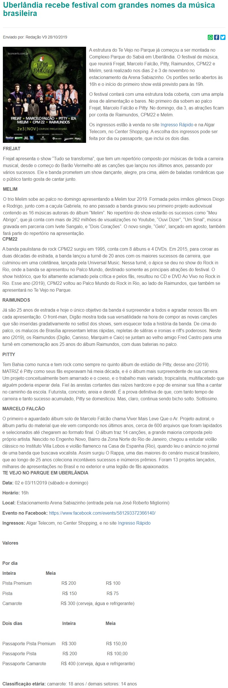ONLINE - Uberlândia recebe festival com grandes nomes da música brasileira - PONTO DE VENDAS (28/10)