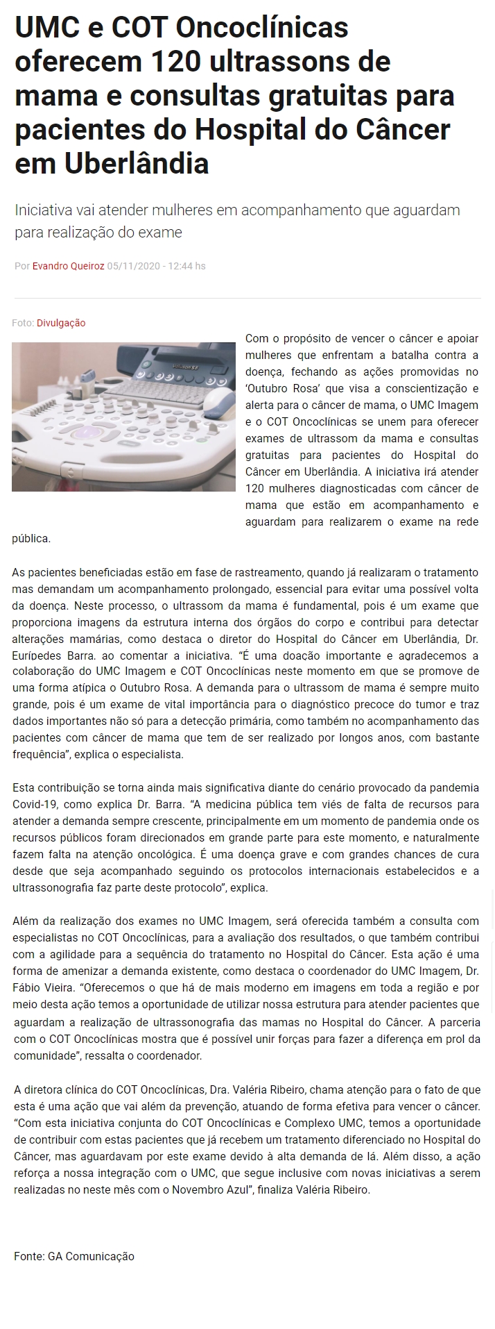 https://www.cidadeacidade.com.br/noticia/2421/umc-e-cot-oncoclinicas-oferecem-120-ultrassons-de-mama-e-consultas-gratuitas-para-pacientes-do-hospital-do-cancer-em-uberlandia.html