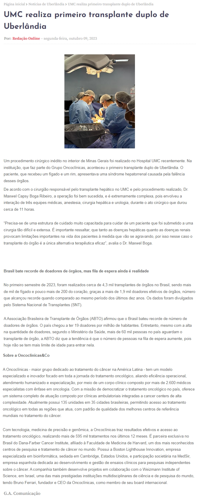 ONLINE-UMC realiza primeiro transplante duplo de Uberlāndia-09.10