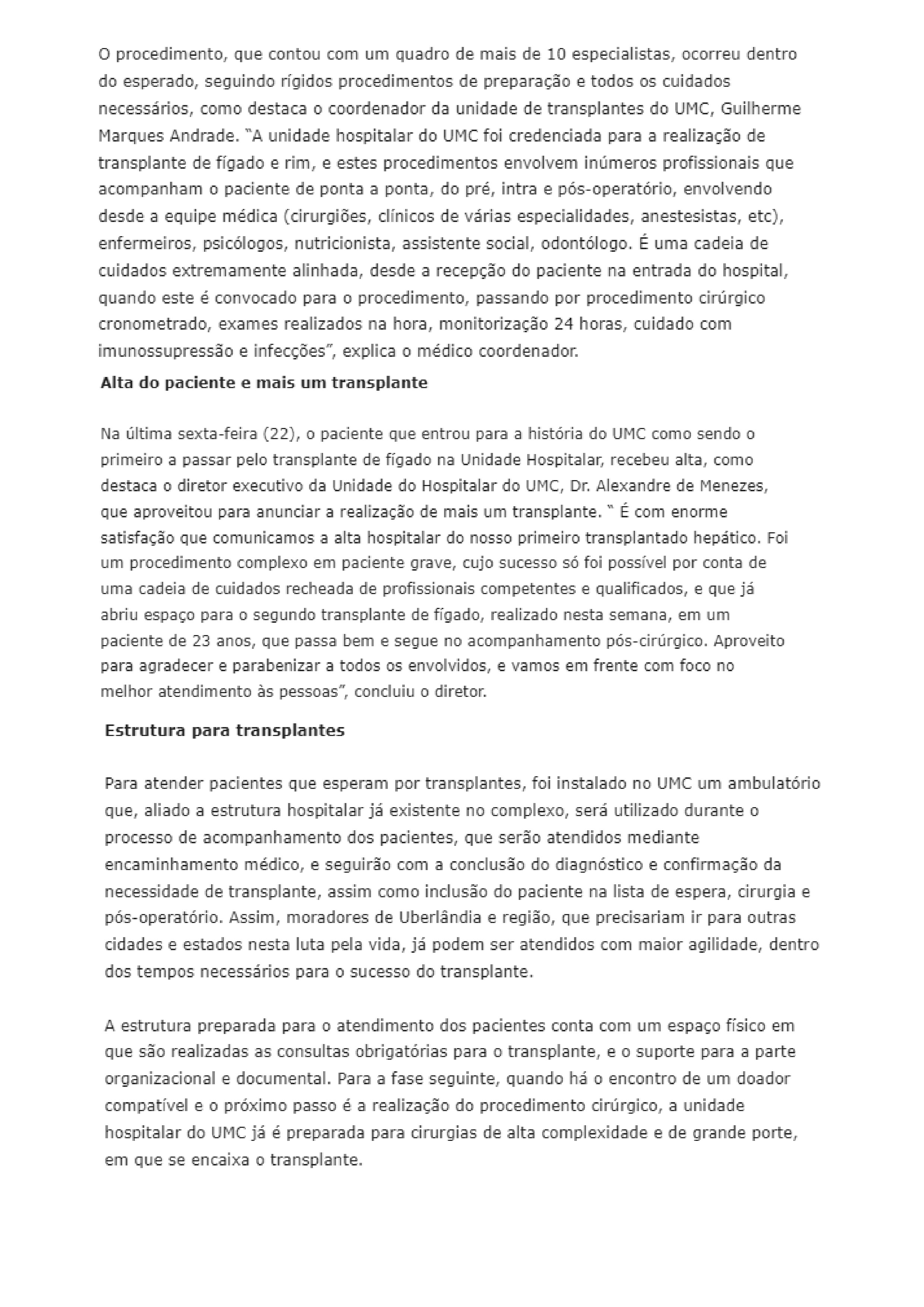 ONLINE - UMC realiza transplante inédito de fígado em Uberlândia e região - 25.04