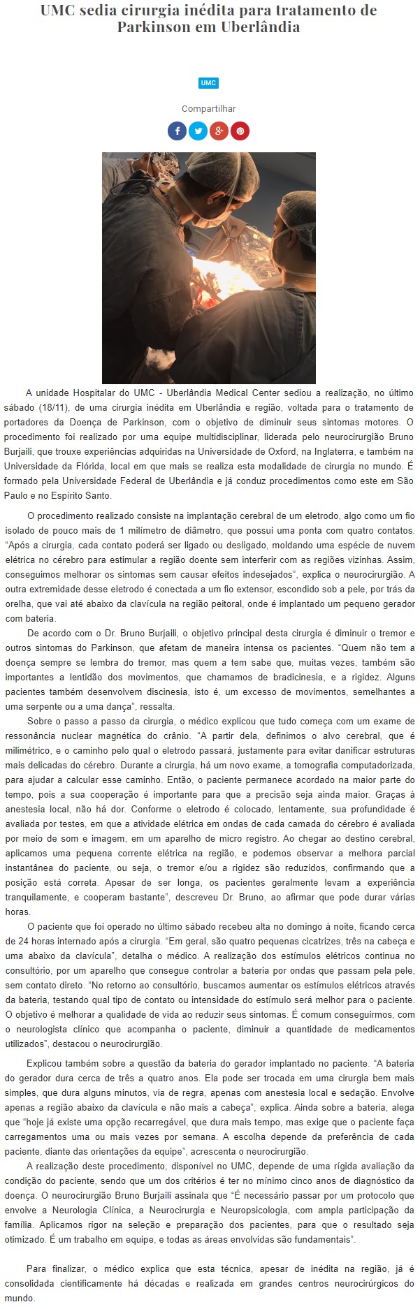 ONLINE - UMC sedia cirurgia inédita para tratamento de Parkinson em Uberlândia - 24/01