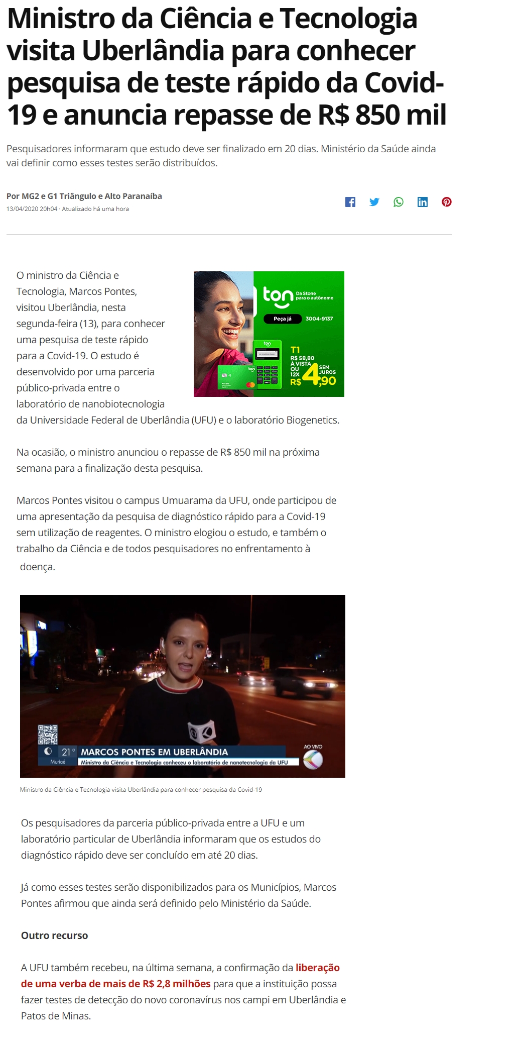 https://g1.globo.com/mg/triangulo-mineiro/noticia/2020/04/13/ministro-da-ciencia-e-tecnologia-visita-uberlandia-para-conhecer-pesquisa-de-teste-rapido-da-covid-19-e-anuncia-repasse-de-r-850-mil.ghtml