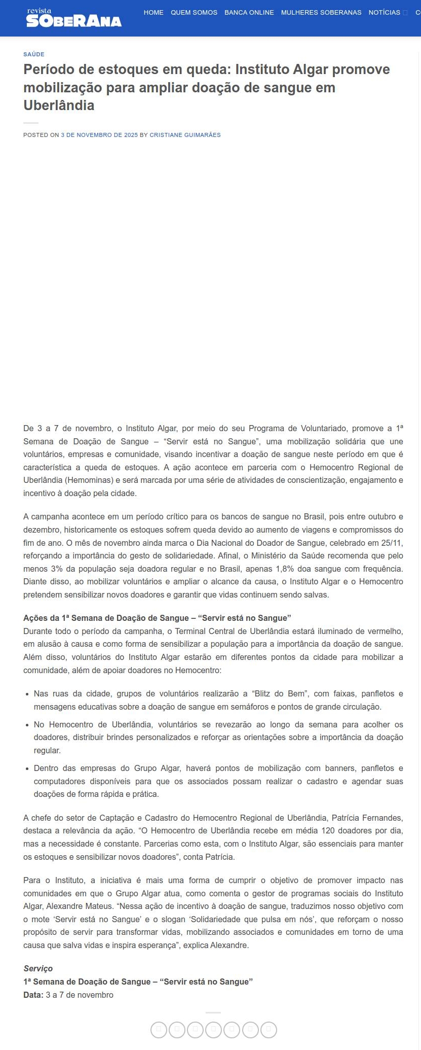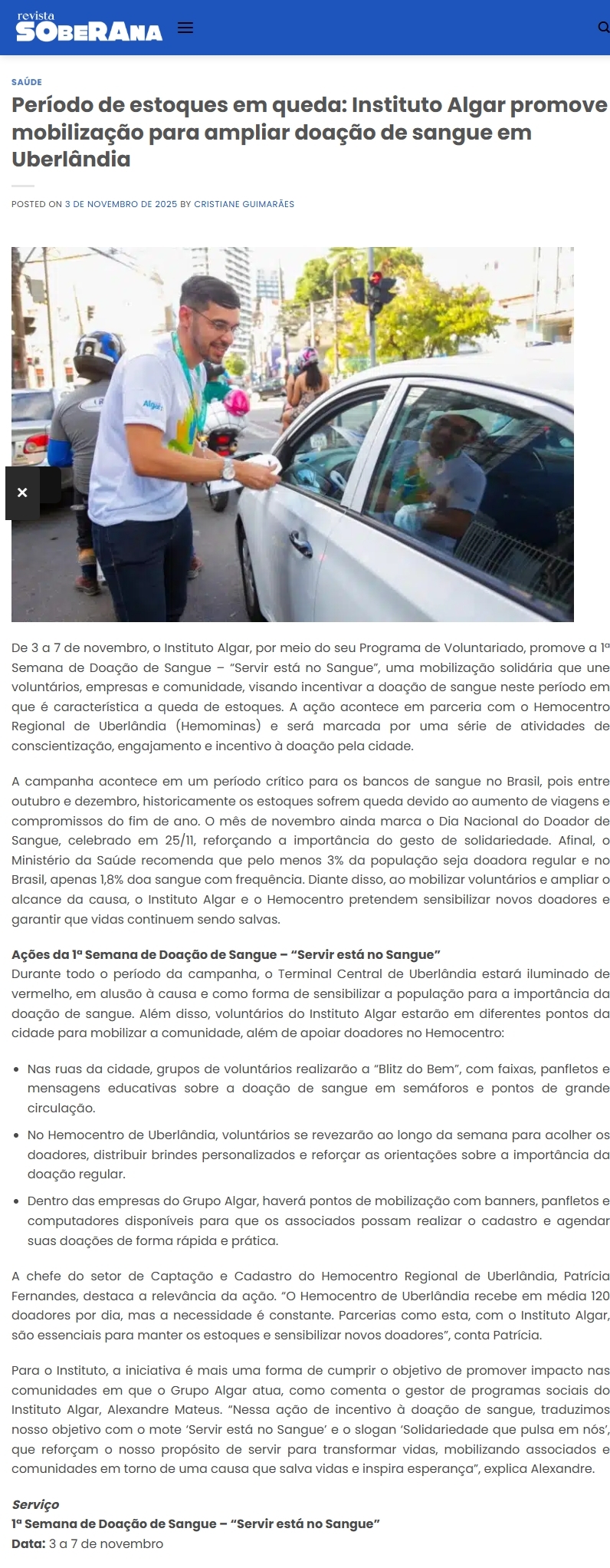 https://revistasoberana.com.br/2025/11/03/periodo-de-estoques-em-queda-instituto-algar-promove-mobilizacao-para-ampliar-doacao-de-sangue-em-uberlandia