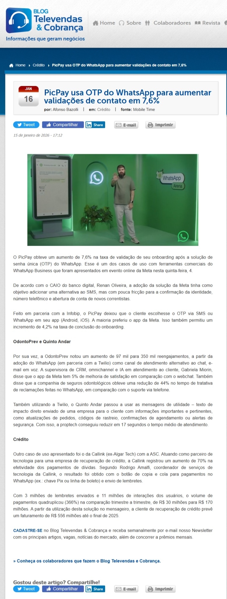 15/01/2026 - Blog Televendas & Cobrança