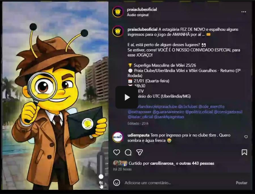 PRAIA CLUBE - REELS - INGRESSOS PARA O JOGO DE AMANHÃ - 20-01