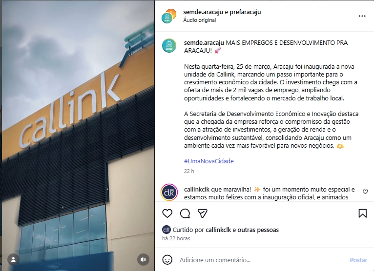 PREFEITURA DE ARACAJU - REELS - INAUGURAÇÃO CALLINK EM ARACAJU - 26/03/2026