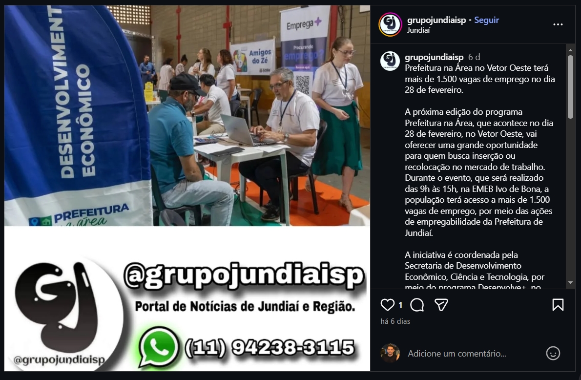 Prefeitura na Área no Vetor Oeste terá mais de 1.500 vagas de emprego no dia 28 de fevereiro.
