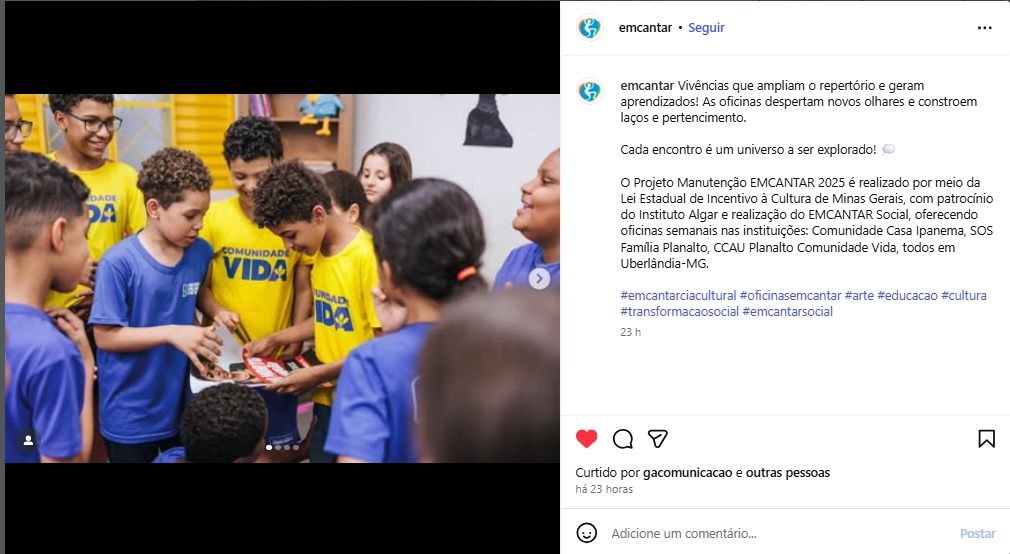 Projeto Manutenção EMCANTAR 2025 amplia o repertório e geram aprendizados - patrocínio do Instituto Algar