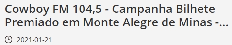 RÁDIO - Campanha Bilhete Premiado em Monte Alegre de Minas - 21/01