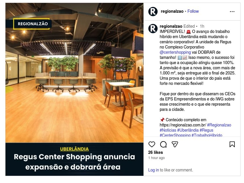 Regus Center Shopping anuncia expansão e dobrará aréa
