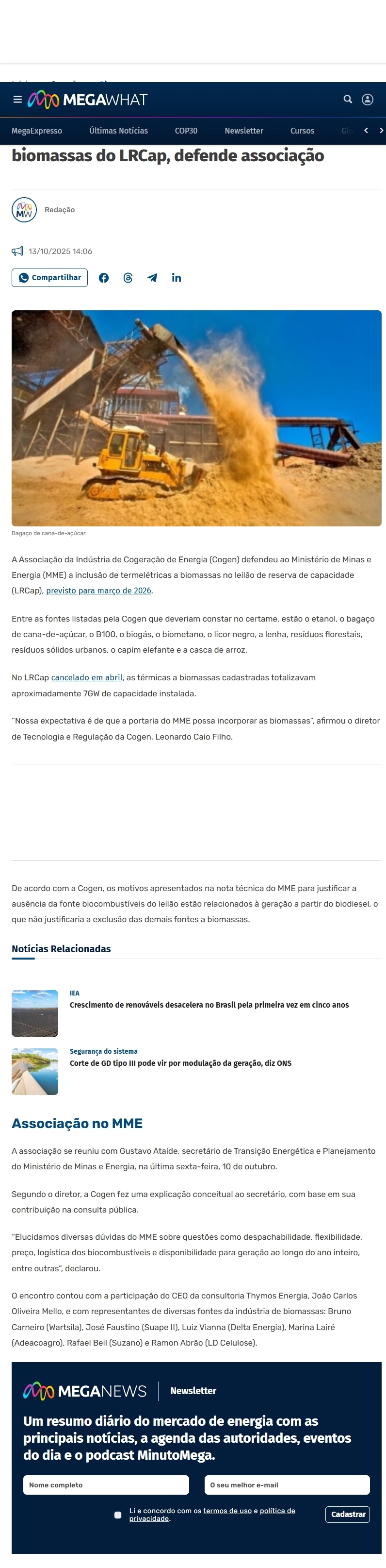 Retirada do biodiesel não justifica excluir biomassas do LRCap, defende associação - Leia mais em: https://megawhat.energy/geracao/biomassa/retirada-