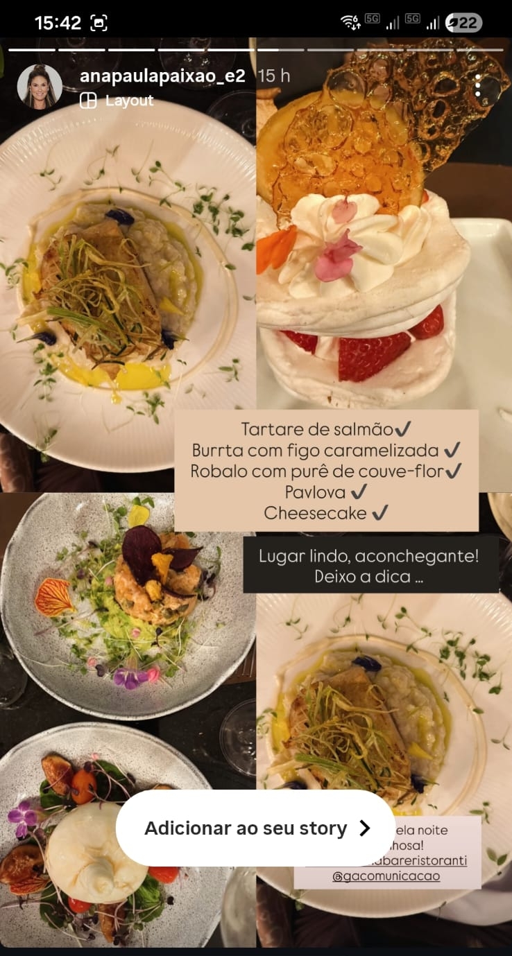 Stories da Ana Paula Piaxão divulgando cardápio de Primavera