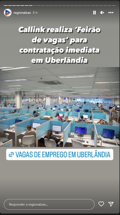 STORY - Link para a matéria "Callink realiza 'Feirão de vagas' para contratação imediata em Uberlândia"-26.10